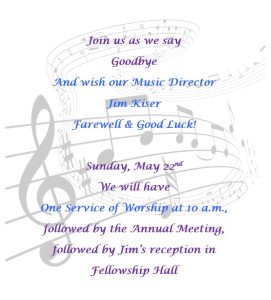 JIM KISER’S RETIREMENT RECEPTION May 22nd, 2022 11:30 am - 12:30 pm FeaturedPlan to join us following the Annual Meeting to say farewell and wish Jim all the best in his retirement. 11:30 a.m. – ? Save the Date SHARE ON Twitter Facebook Buffer LinkedIn Pin It